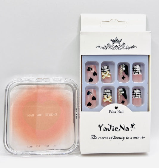 YAJIENA Pearl Plaid Mid Length Style - Press On Nails